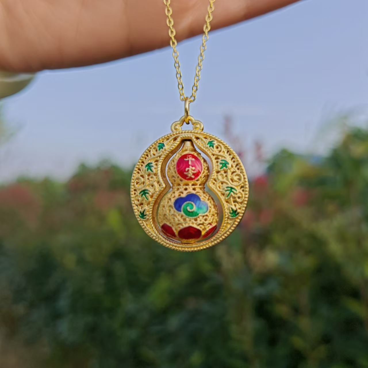 沙金葫芦项链立体可旋转国潮雕花祥云气质中国风吊坠铜合金首饰品
