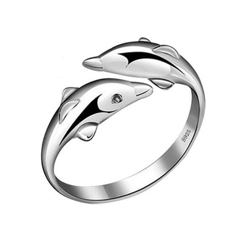 幸福双イルカ恋愛開口指輪日韓版銀色恋愛イルカカップリング指輪指輪女子工場