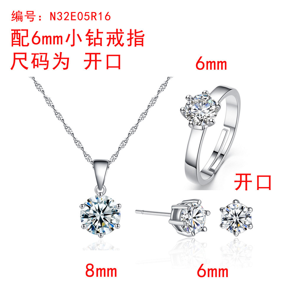 三点セットの女性ドリルリングシミュレーション莫桑石生放送カップル結婚指輪六爪指輪ネックレスピアス