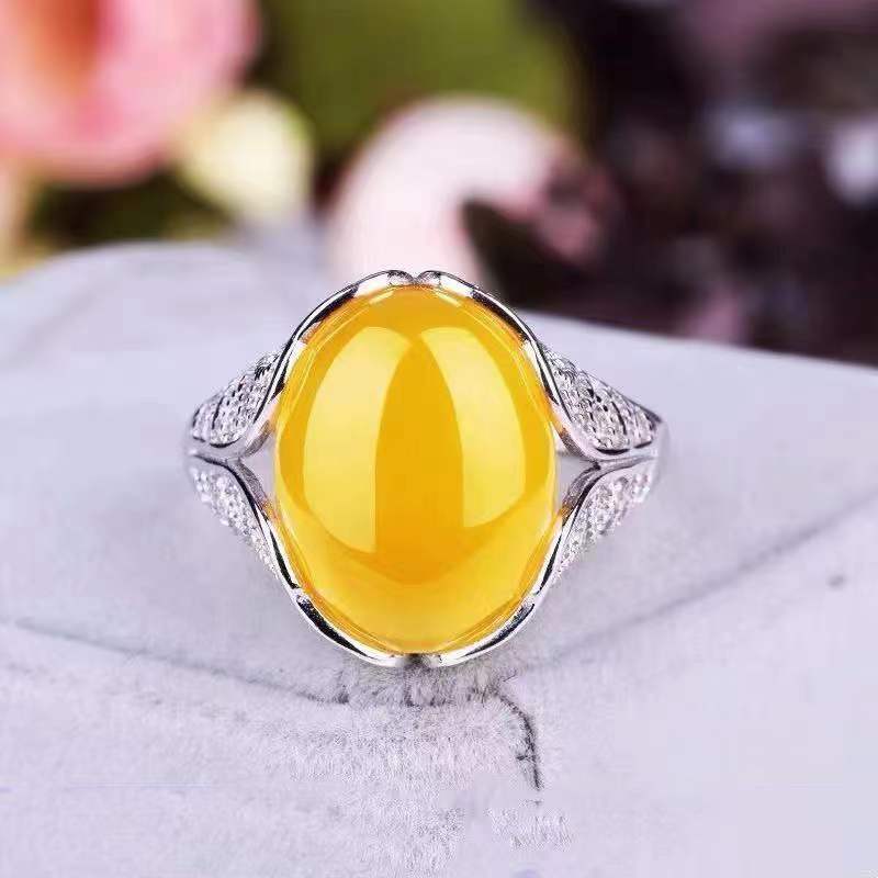 中国式宮廷風天然サファイア指輪女性銀メッキ祖母緑赤瑪瑙蜜ろう宝石指輪活口