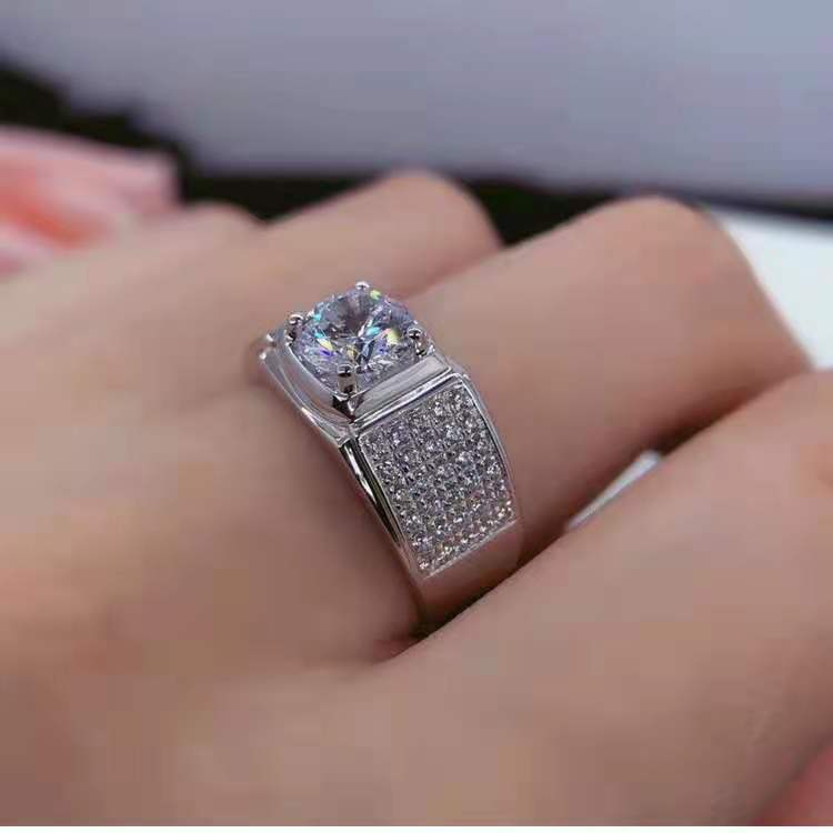 S 925銀の指輪の男の覇気の1カラットのジルコンの大きい男の戒のファッションの覇気のビジネスの男の金の指輪の活口の指輪