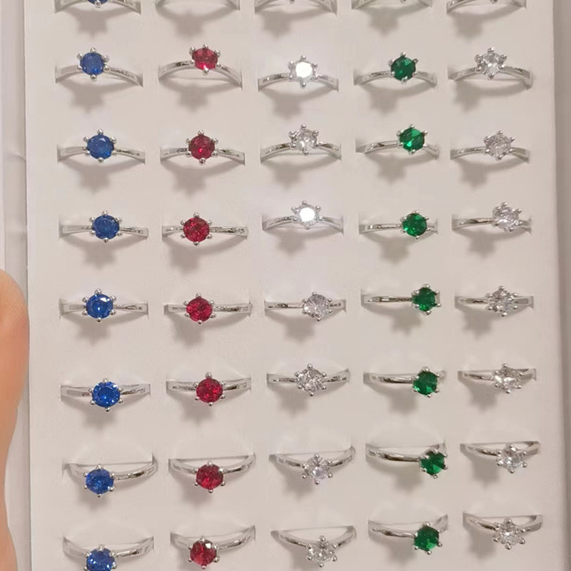新しいクラシックなカラフルなジルコンリング 1 カラット 6 本爪ダイヤモンドリング Douyin Kuaishou ライブブロードキャスト供給メーカー卸売