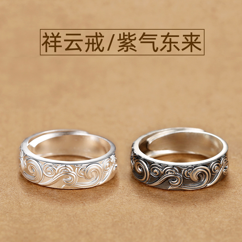 紫気東来指輪男性ファッションins個性男性独身戒ファッション古風レトロ浮き彫り祥雲指輪