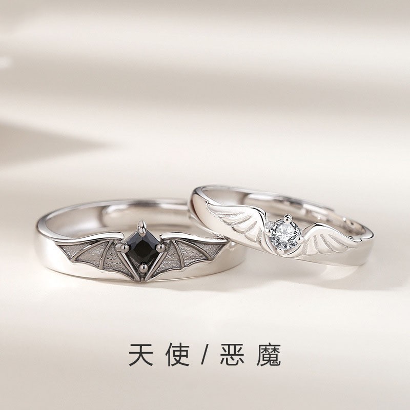 天使と悪魔のカップルリング、男性と女性のファッショナブルな人差し指リング、ニッチなパーソナライズされた翼のオープンリング