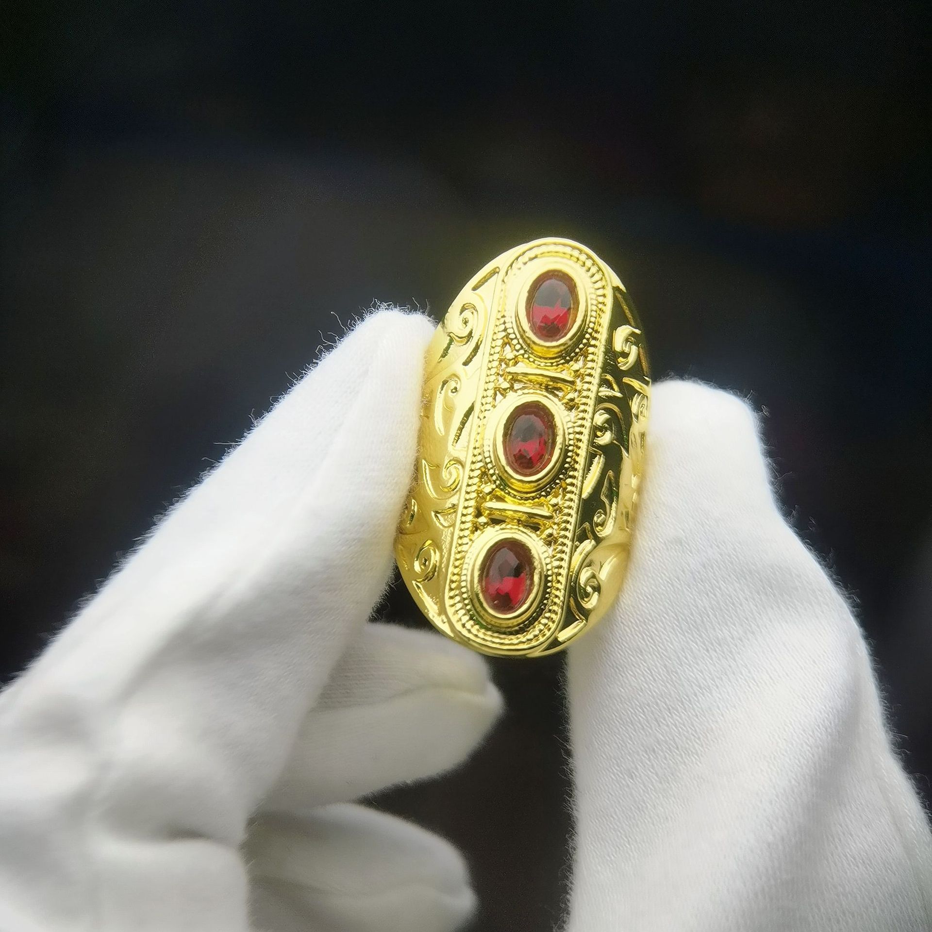 慶余年二皇子同指輪ネパールレトロ金メッキ透かし彫りガーネット戒食男女開口