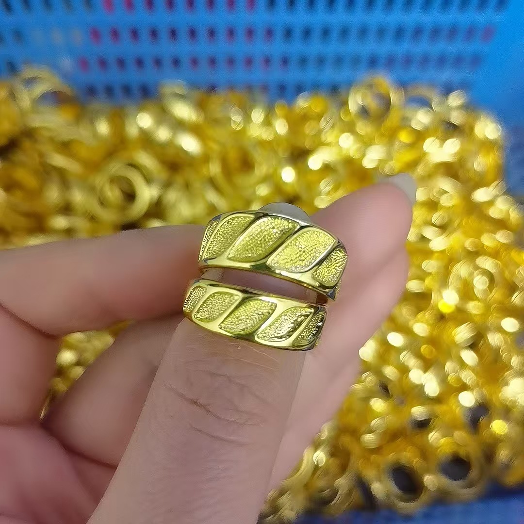 クロスボーダー熱売指輪銅メッキ18k金カップル指輪欧米新型砂菱金活開口指輪卸売り
