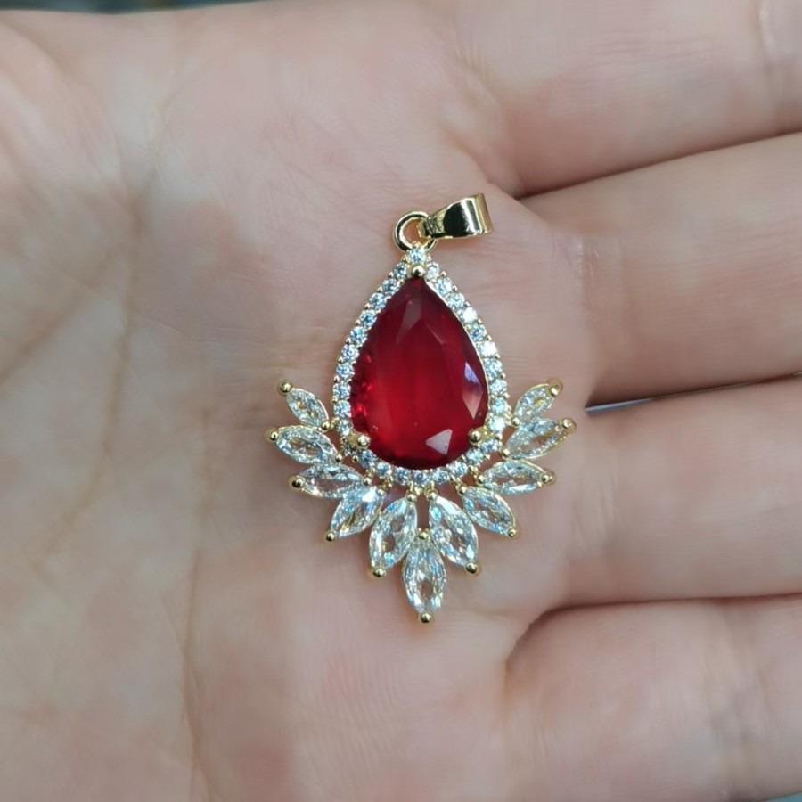 韓国版ウォータードロップブルーミングペンダントクリソプレーズファッションルビーレディースネックレスネックレス翡翠露店卸売