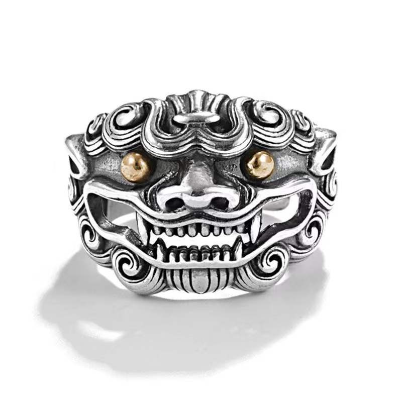 レトロな神獣タロットリングメンズ唐獅子幸運を引き寄せる横暴なトレンディな個性のシングルリング調節可能なリング
