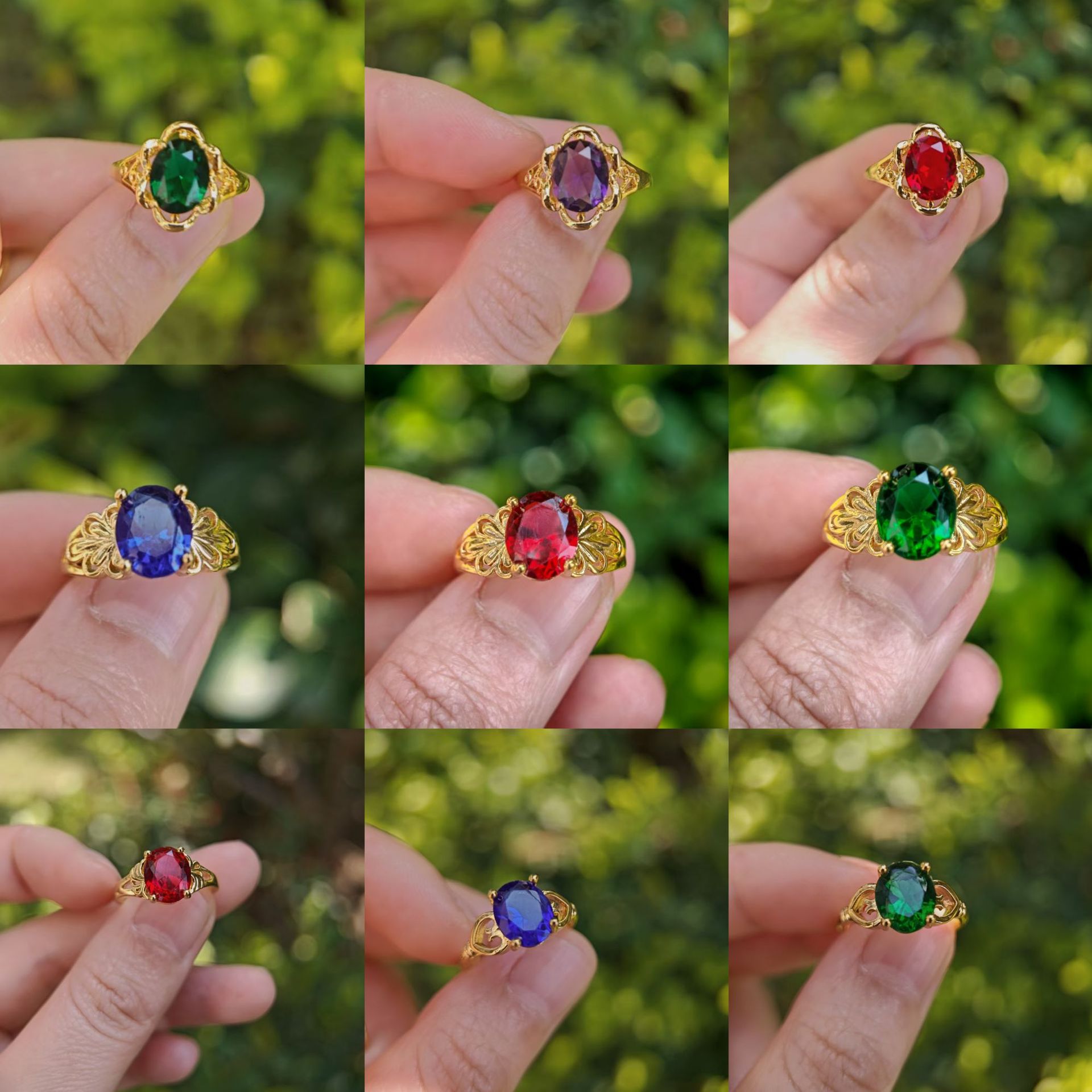 インターネット有名人 Douyin ライブカラージュエリー模造天然トパーズアメジストイエロークリスタルペリドットレッドザクロリング
