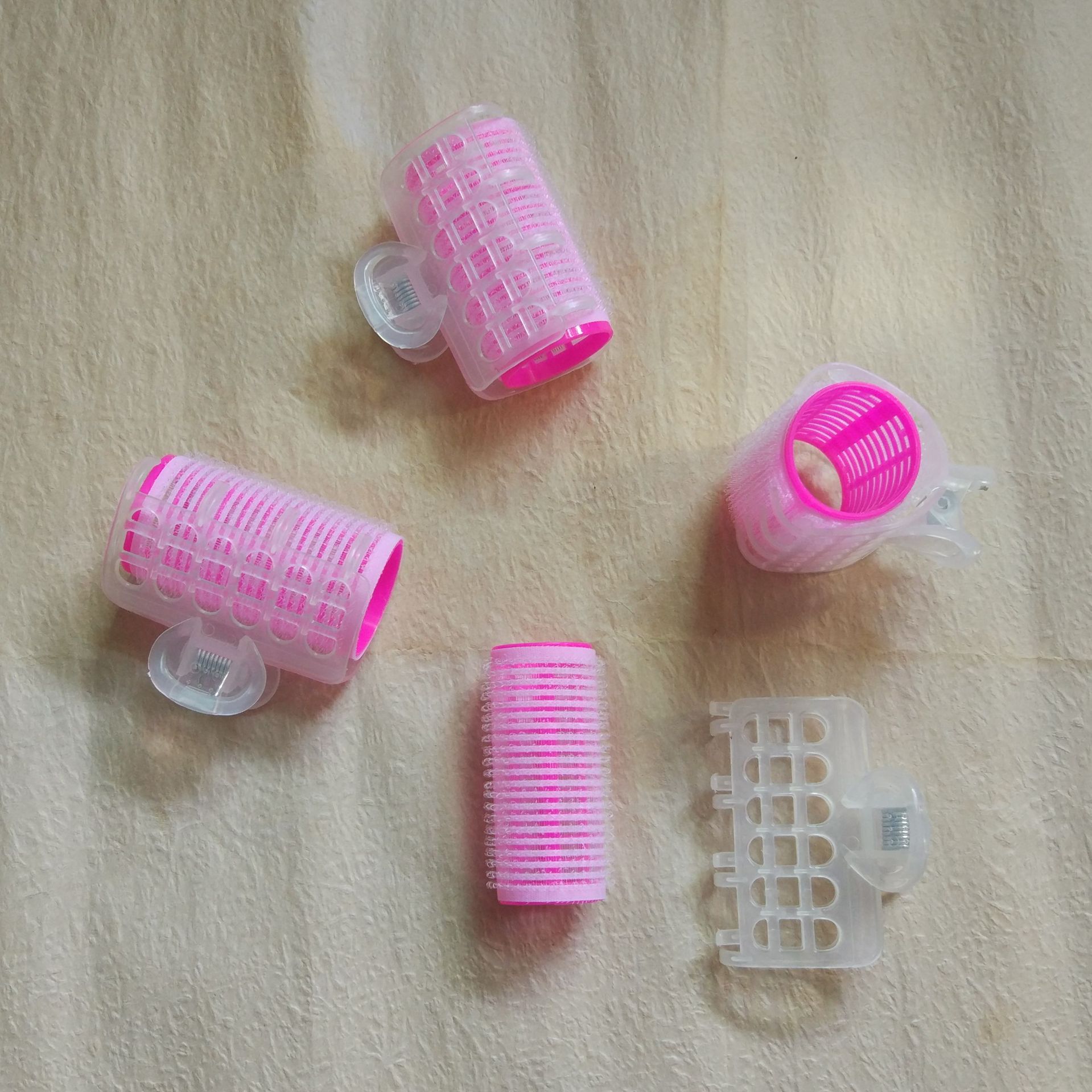 現物は髪を傷つけない母の髪の中に大きな波のプラスチックのカールを掛けます。