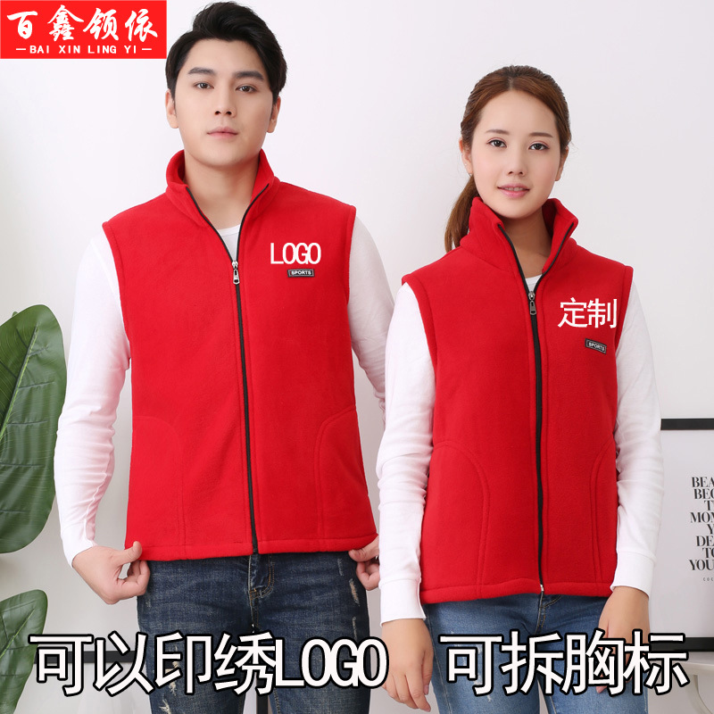 フリース馬甲はロゴ保温作業服ベストを制定して、女性の秋冬工装がベルベット男のコートをつかんで印字する