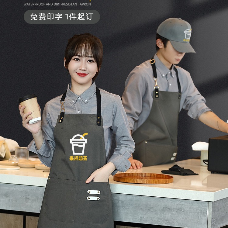 キャンバスエプロンロゴ印字飲食専用ミルクティー店花屋コーヒーアイロン師防水作業服女性カスタマイズ