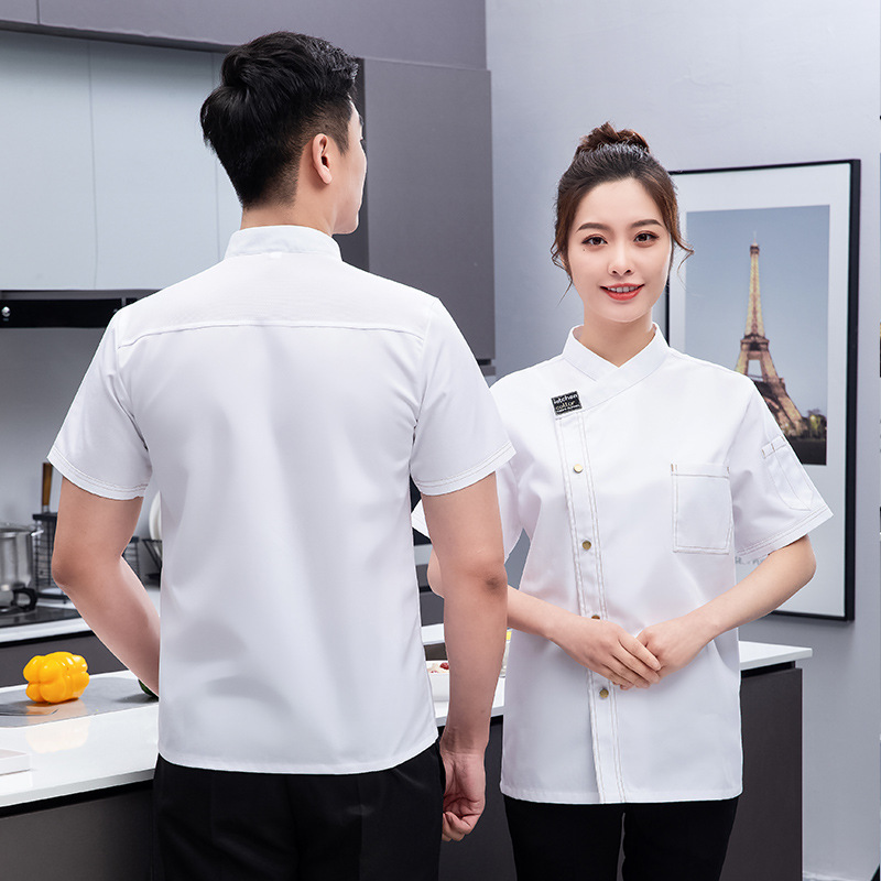 レストランホテルの夏のシェフの高級キッチン作業服男性半袖氷糸通気性の薄い飲食後のシェフ服