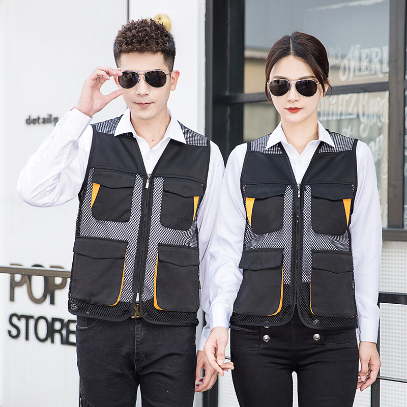 夏の通気メッシュ作業服は馬甲製のロゴを印刷します。