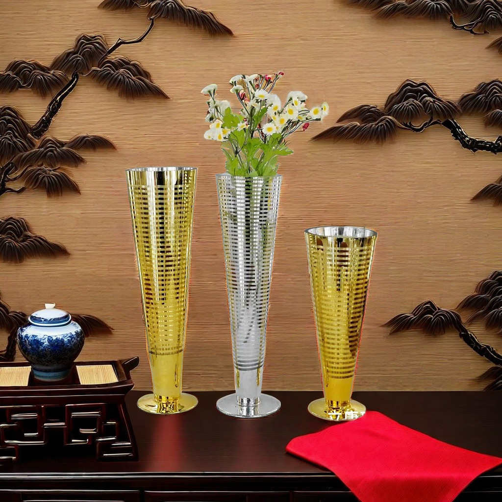 工場直販クリエイティブゴブレットレーザーゴールドとシルバーのストライプガラス花瓶水耕栽培花ホテルの結婚式の装飾