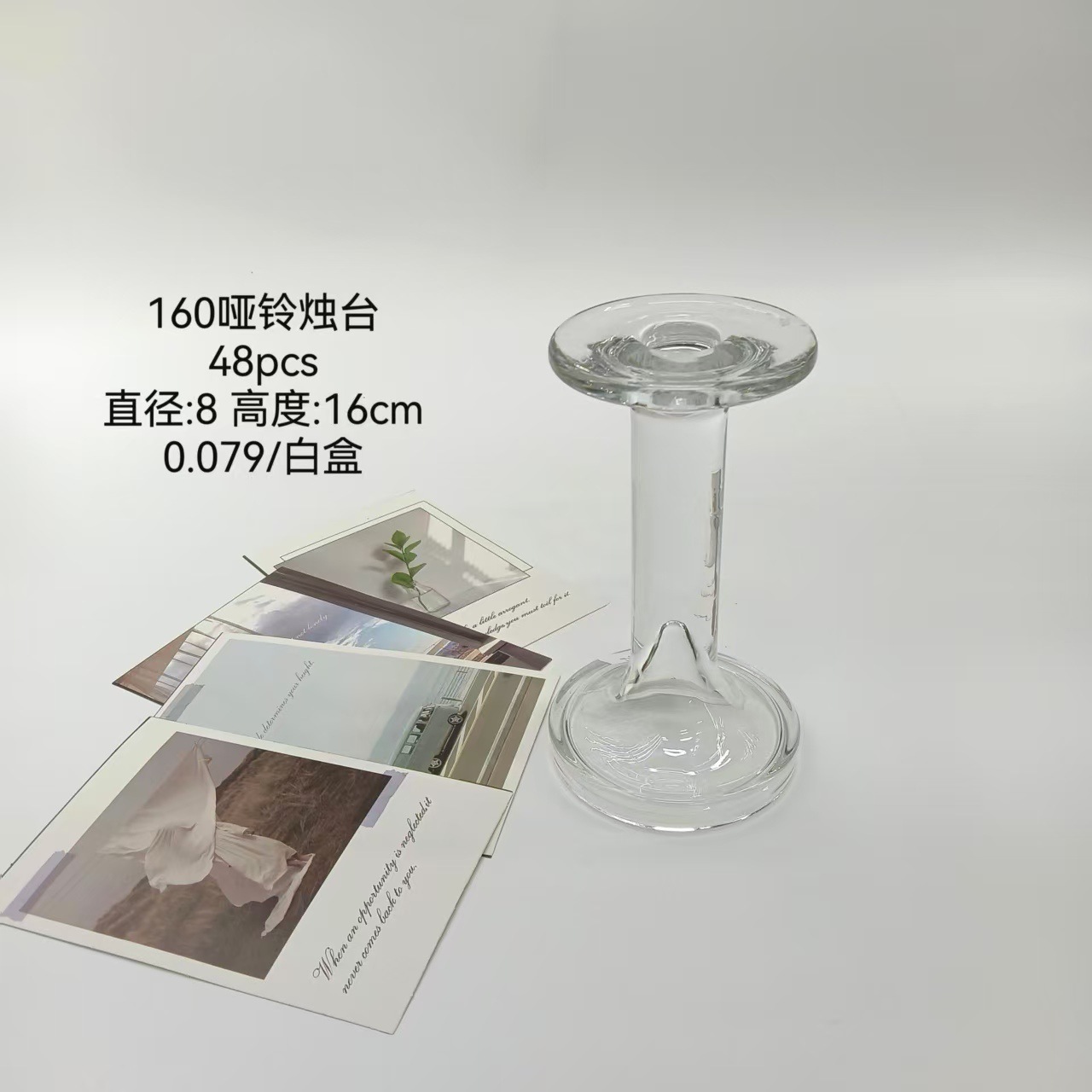 シンプルな創意的な高足両用透明アロマキャンドル台家庭装飾創意ダンベルガラス棒ワックス台置物