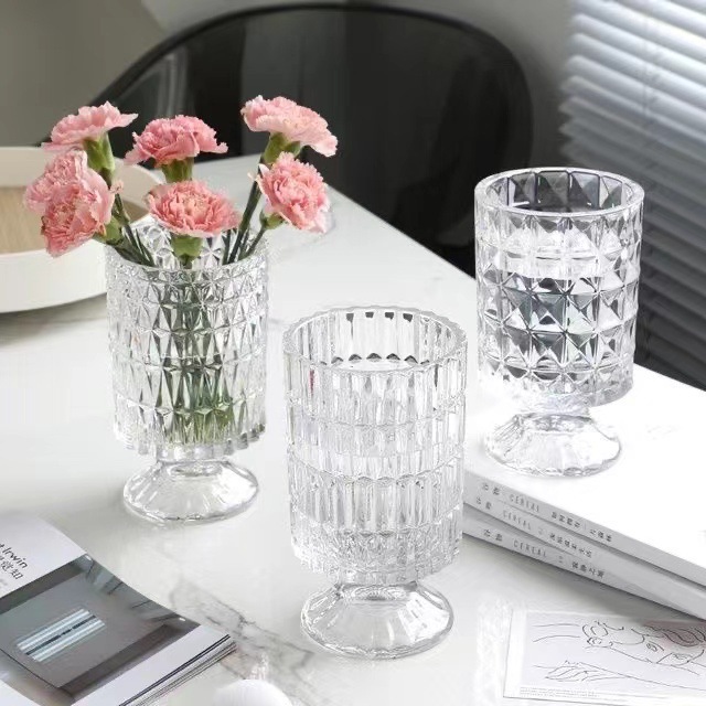 北欧スタイルフレンチレトロライト高級レリーフダイニングテーブル透明背の高いガラス花瓶ハイエンド風ランプガラス花瓶