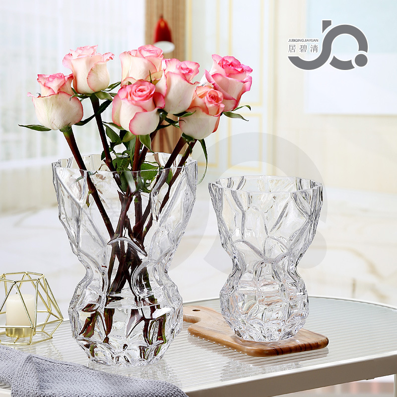 北欧ファッションアートガラス花瓶広口デスクトップ谷の形水耕花装飾装飾品ユリローズ