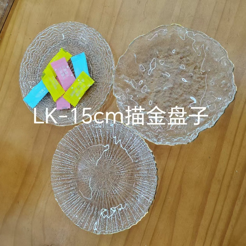 金辺の軽い豪華なガラスの皿ネットの赤い家庭用の透明な食器の果物の皿の洋食のサラダの碗の皿の家庭用