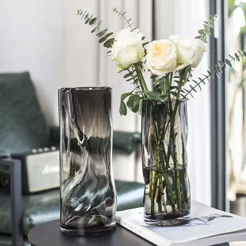 シンプルな透明なガラスのプリーツストレート花瓶クリエイティブ装飾装飾品リビングルームフラワーアレンジメント水生花ライト高級花器