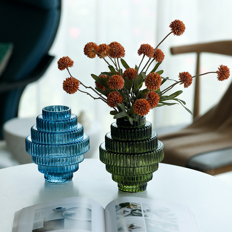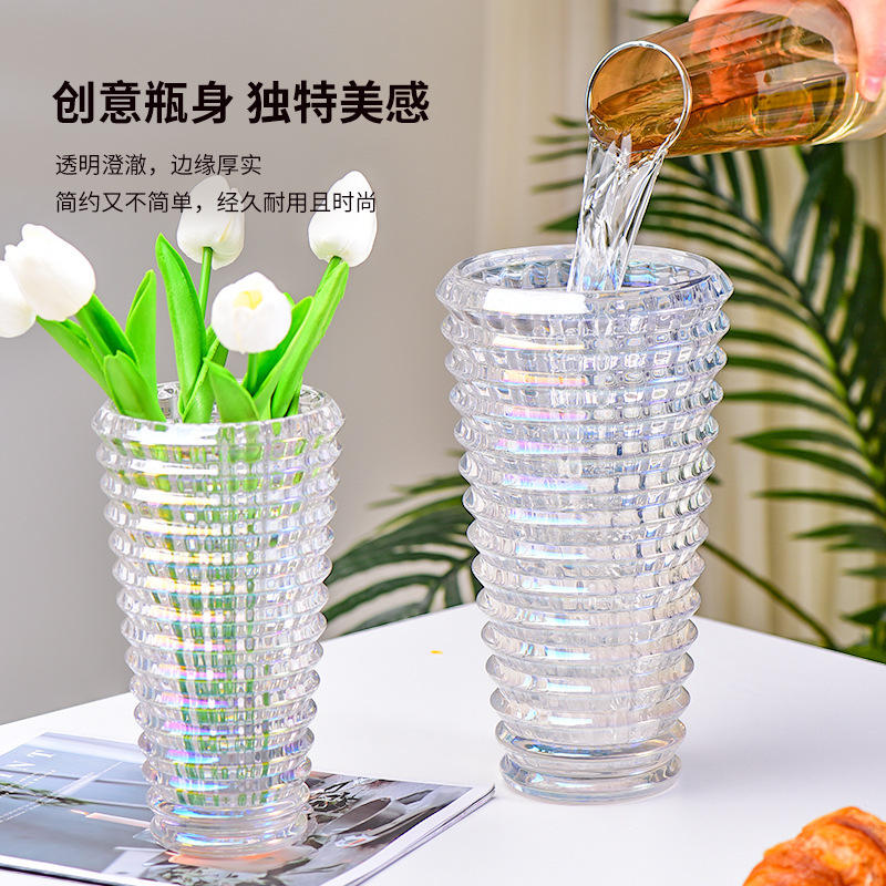 柔らかい装飾ガラス装飾品リビングルーム玄関花瓶モダンシンプルな縦パターンフラワーアレンジメント水塔形状ライト高級モデル