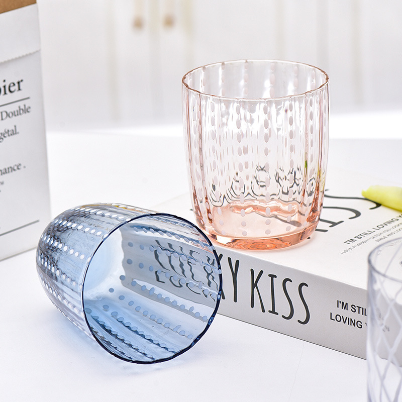 メーカー卸売カラーガラスストライプ透明ウォーターカップ家庭用さまざまなガラス高価値ジュースカップセット
