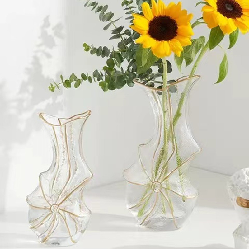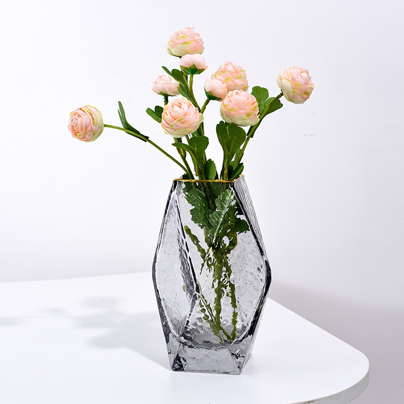 モダンな幾何学的な創造的なフラワーアレンジメントガラス金縁の槌目花瓶モデルルームホームリビングルームの装飾品