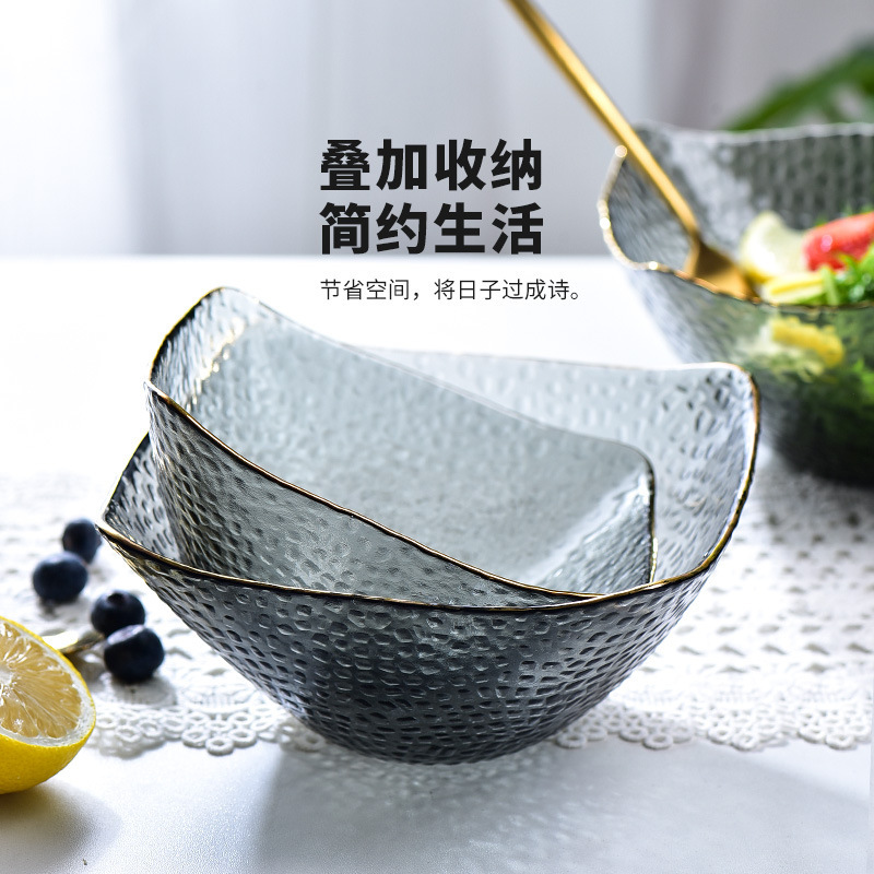 大容量insガラスカップソーラーボウル学生家庭用耐熱熱帯ガラスデザート果物透明ボウル