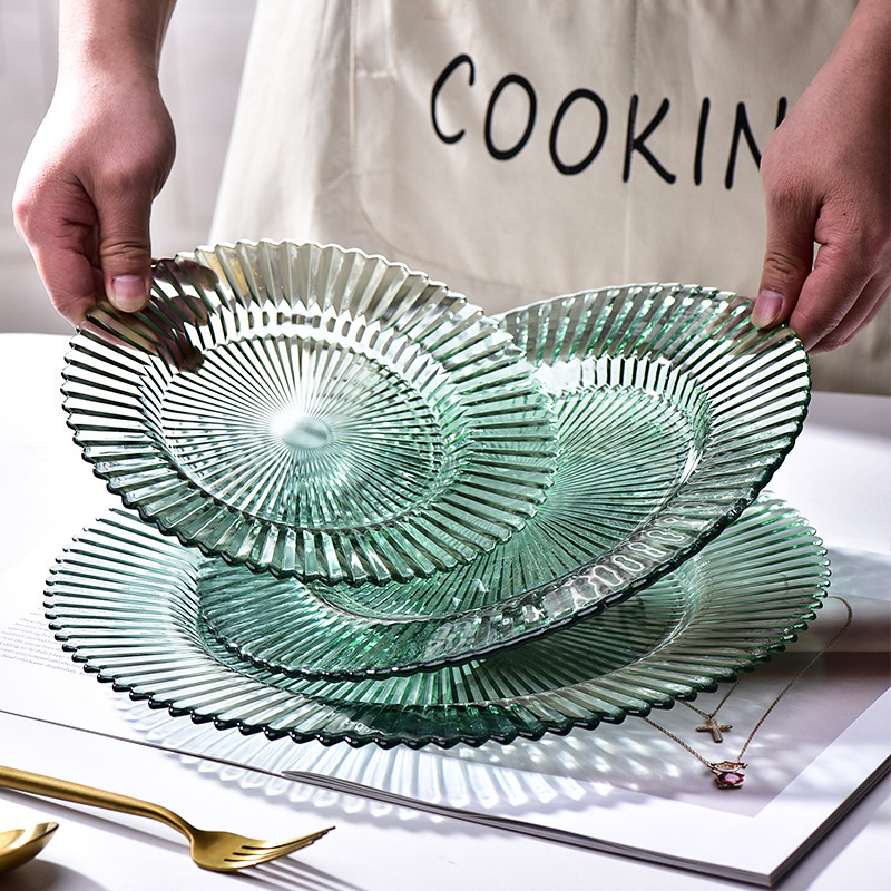 家庭用カラーガラス折り紙盤透明果盤大サイズ創意家庭用果物盤洋食盤卸売り