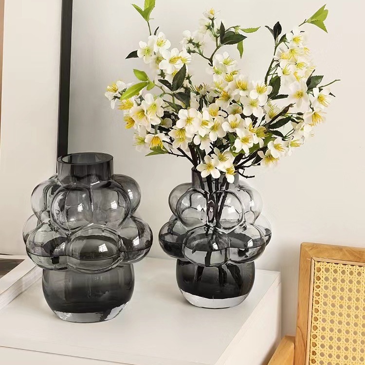 マカロン花瓶装飾リビングルームフラワーアレンジメントガラス透明水耕花ハイエンドシンプルインスタイルステップバイステップ
