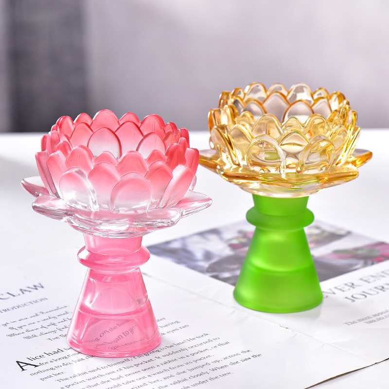 アロマキャンドルクリスマスキャンドルホルダー卸売ラウンドベースロータスキャンドルホルダーホームガラス背の高いロータスカラーキャンドルホルダー
