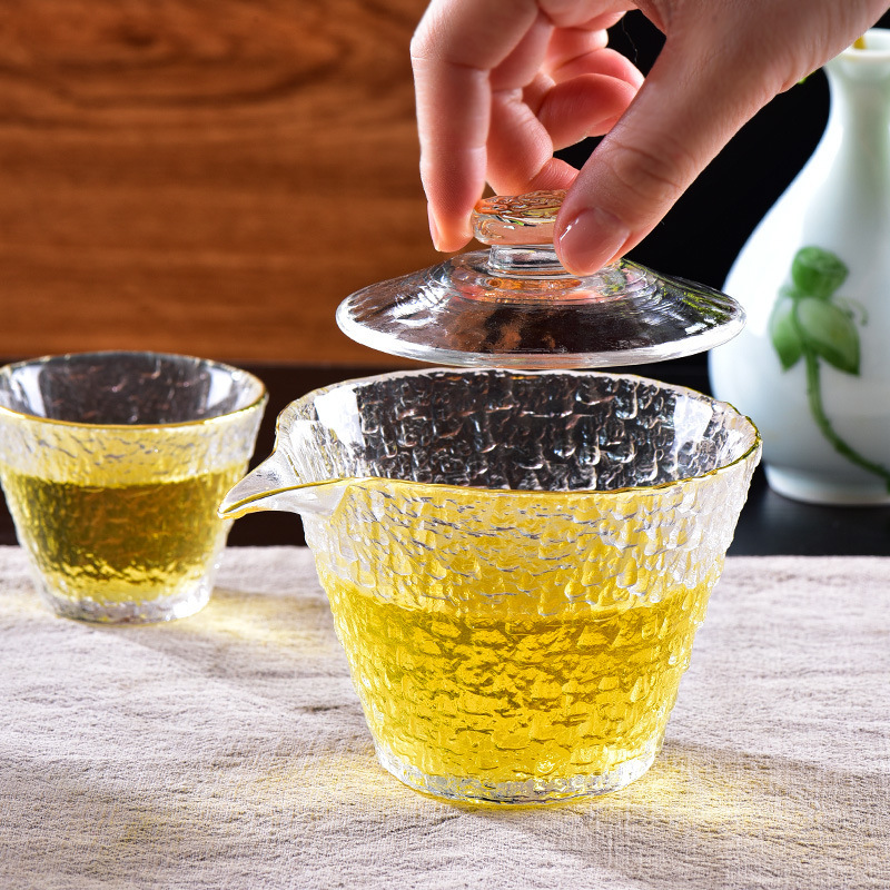 ガラスの公道の杯のハンマーの紋様の厚い分茶器の厚い耐熱の鷹の口の手作りの大きいサイズの茶器のセット