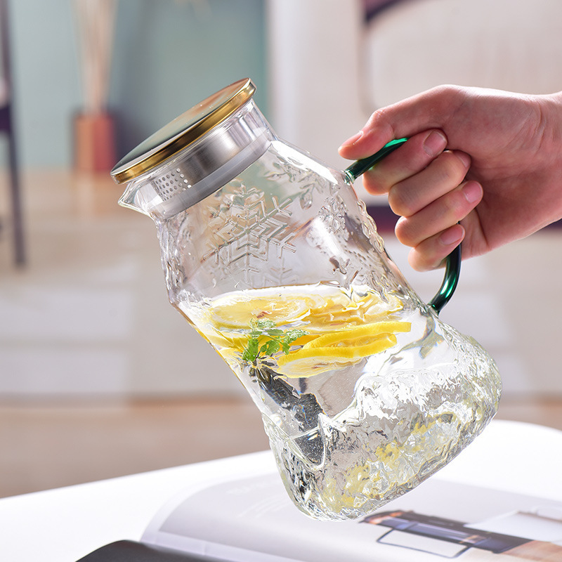 スノーフレークパターンコールドケトルカップセット高温耐性防爆家庭用大容量コールドケトルカップ高ホウケイ酸ガラスケトル