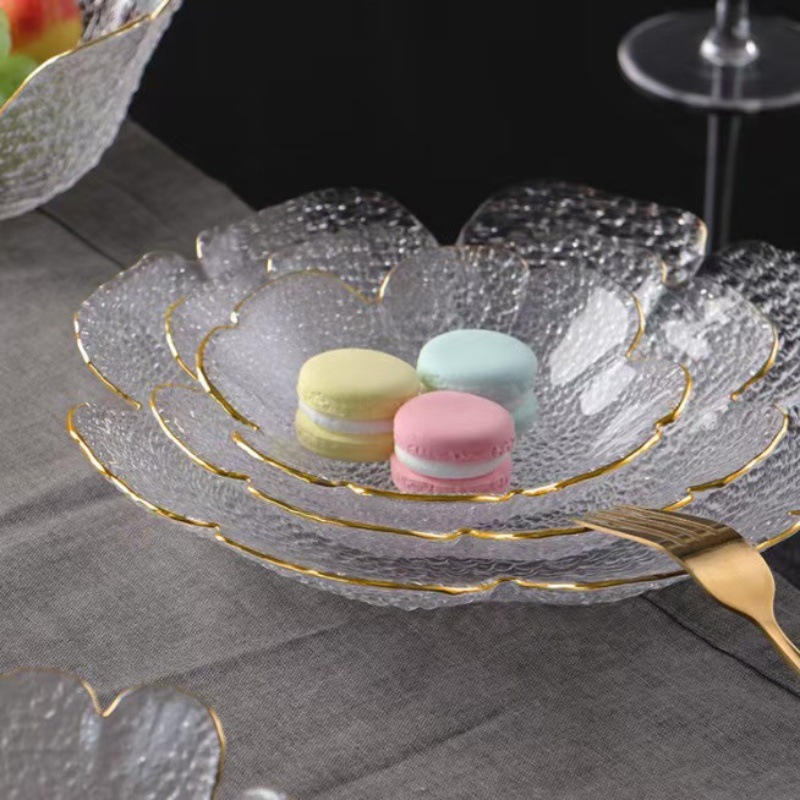 花びら和風ハンマー金辺ガラス皿家庭用食器北欧ネットレッドホテル果物皿デザート皿