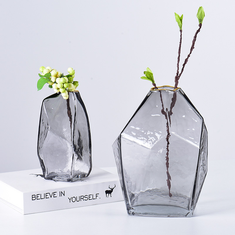 メーカー卸売クリエイティブヨーロッパ透明金縁幾何学的特殊形状シングル花瓶リビングルームの家の装飾装飾品