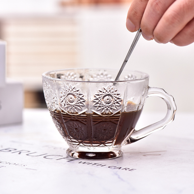 メーカー家庭用ガラスクリエイティブ彫刻コーヒーカップセットガラスハンドルパターンコーヒーカップひまわりカップ