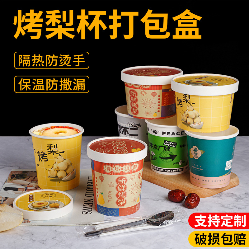 使い捨ての焼き梨の紙コップは蓋を持っています。