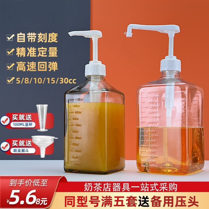 シロップ絞りボトル、ミルクティーショップ用ガラス製砂糖絞りボトル、手押しプレスヘッド、フルクトース定量プレスボトル、ジュースプレス