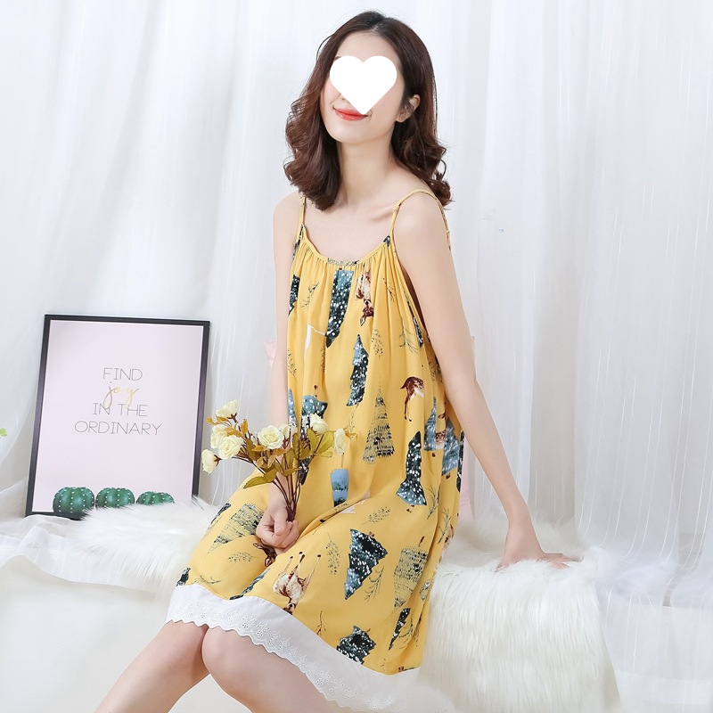 サスペンダーナイトガウン女性の夏のセクシーなパジャマ綿シルクホーム服綿シルク大きいサイズの人工綿のドレスかわいい薄いスタイル