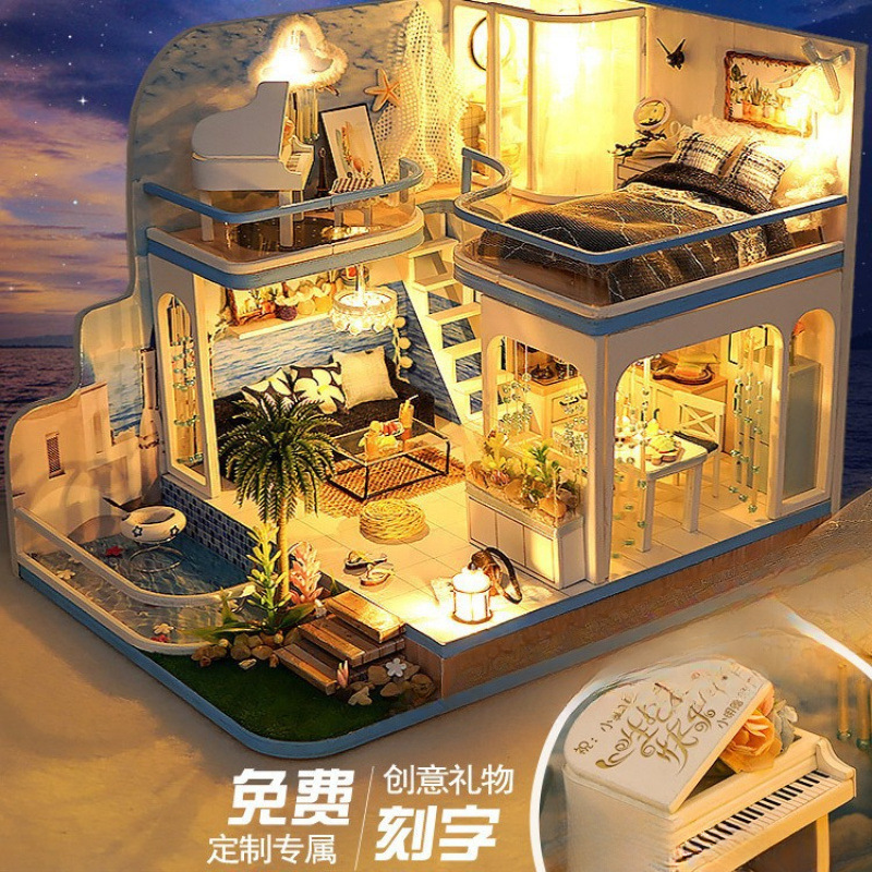 手作りキャビンヴィラミニ小さな家組み立てモデルスーパーワールドビルディングブロックおもちゃ誕生日ギフト女性のための