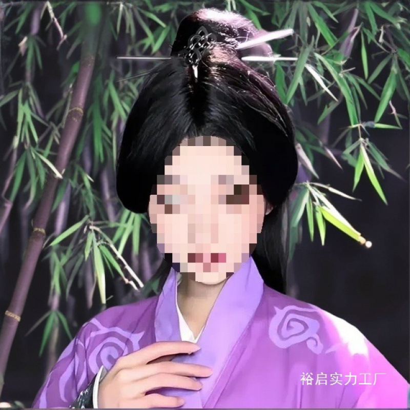 フェイクヘア 古風 ロングストレートヘア ミドル分け前髪 女将軍 ハイポニーテール アニメ風 フルヘッドギア