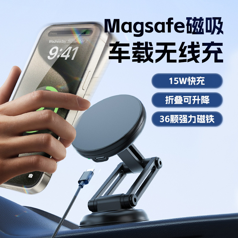 クロスボーダー新型マグネット式車載マグネット式スタンド充電式magsafe車載携帯電話スタンド計器台スタンド付き
