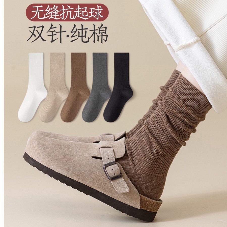 春秋タイプのクラシックな純色の靴下には、純色の中筒スタッキングソックスの太い靴下と女性の長い筒の毛糸のふくらはぎの靴下があります。