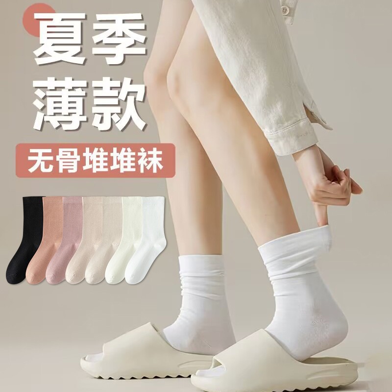 靴下の女性の夏の早秋の中筒の白い夏の綿は汗を吸います。