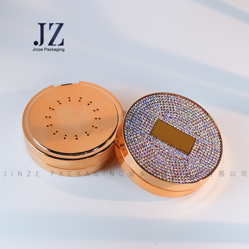 進沢二重磁気ボタン磁気吸引粉餅ケースの蓋には、ドリルロゴの色を貼って化粧粉ケースをカスタマイズすることができる