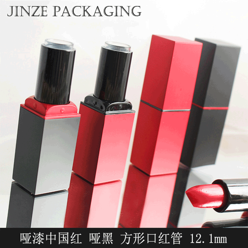 角型フロスト中国赤黒口紅管唇膏管口蝋管diy口紅包材
