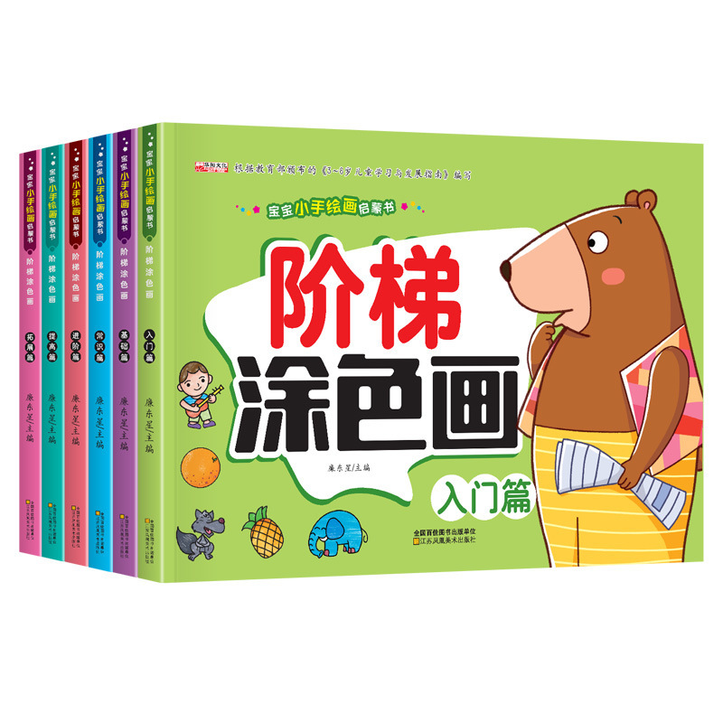 赤ちゃんの手の絵画の啓蒙書の階段の塗り絵の全セットの6冊の3-6歳の幼稚園は絵を描いて色の本を塗ります。