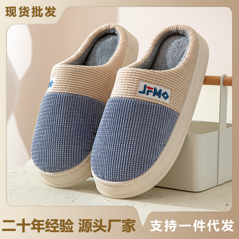 高組のファッション綿のスリッパの女性の冬の家の厚い底の綿のスリッパとベルベットの保温の2024新型の綿の靴の男性の卸売り