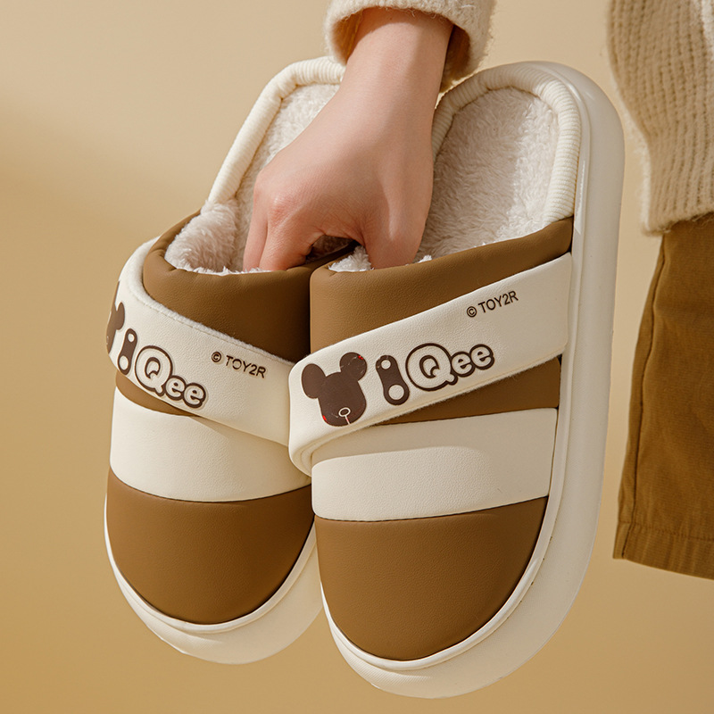 PU綿スリッパ女性冬2024新型保温厚い底カップルバッグと冬毛スリッパ室内家庭女性