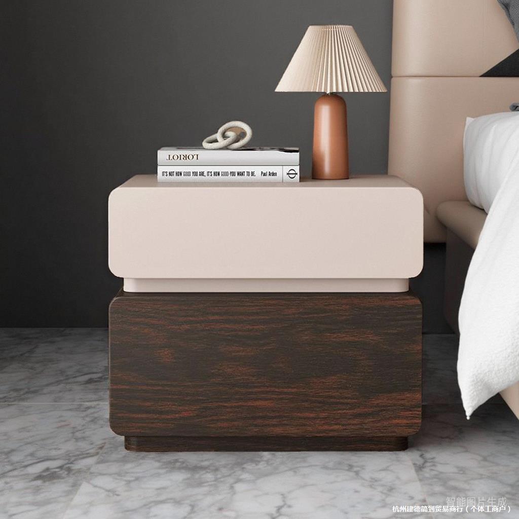 ▧ オーク木目調クリームスタイルベッドサイドテーブル寝室ホームシンプルモダンライト高級ベッドサイドテーブルインターネットセレブ収納